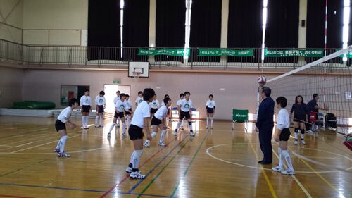 女子は蔵波小学校さんの体育館で、練習試合を行っています。男子は立会アタッカーズさんと練習試合です。